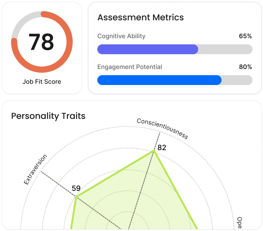 Psychometric signals reveal team fit alongside skills and experience evidence.